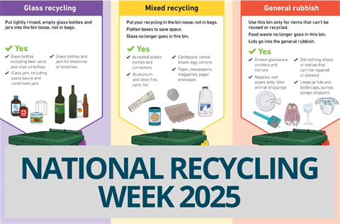 National Recycling Week 2025 Published on 10 November 2025 National Recycling Week is a great opportunity to remind ourselves what can and cannot go into our recycling bins. Tagged as: , Environment